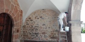 Trébago, 31/07/2021. Se está sacando estos días la piedra del pórtico de la Iglesia, y está quedando muy bien.