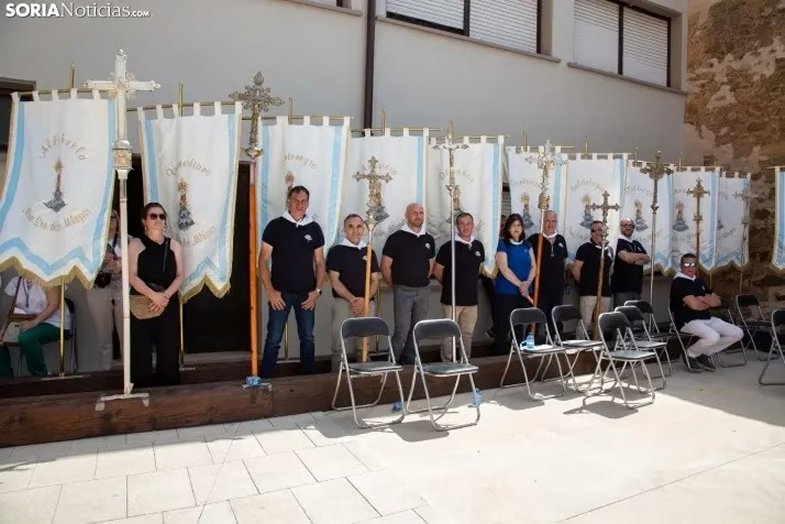 En otras aparece el alcalde de Trébago y mayordomas de la Virgen del Río Manzano de Trébago, en representación del pueblo, portando el estandarte.