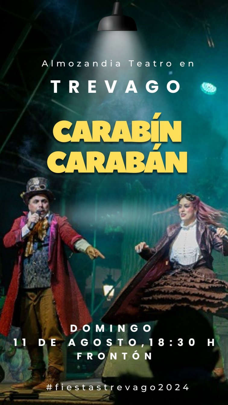 Trébago, 25/08/2024. Otra actividad de verano organizada por el ayuntamiento fue la actuación en el frontón del grupo Almozandia Teatro con la obra Un, dos, tres: Carabín Carabán, el 11 de agosto de 2024.