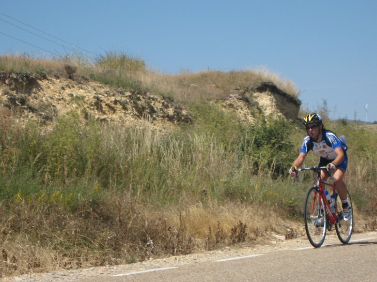 Trébago, 11/07/2009. Hoy, 11 de julio de 2009, ha pasado por Trébago la Vuelta Ciclista a Soria 2009. En las instantáneas que se adjuntan puede verse a varias personas en Trébago esperando en “la nevera” el paso de la vuelta, un escapado, parte del pelotón y dos de las personas de la organización que hacen posible que la prueba se pueda celebrar sin accidentes al no permitir la salida a la carretera general de vehículos procedentes de otras carreteras o caminos. El nombre de “la nevera” procede de que allí estuvo ubicada antiguamente la nevera donde se almacenaba la nieve en invierno para usarla después en verano con fines curativos, y hoy es muy frecuentada en los días de calor por ser la zona más fresca del pueblo y con mejores vistas a la carretera y la zona de labranza conocida como la Vega, lo que permite a los contertulios “discutir” sobre quién cosecha mejor, quién es más habilidoso, cuántos coches han pasado para Magaña, cuántos para Valdelagua...