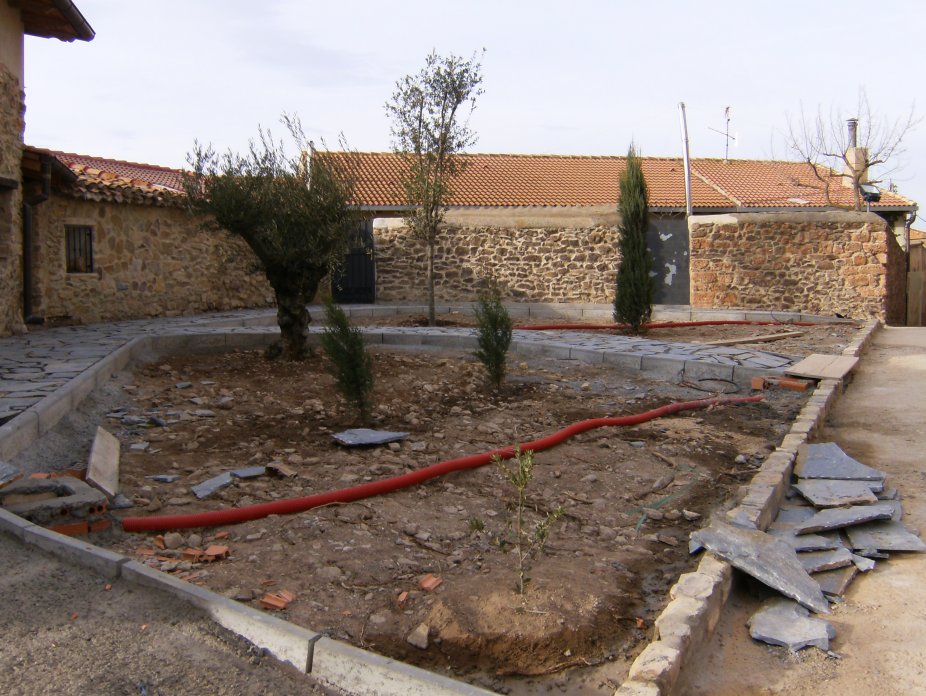 Trébago, 29/11/2009. Dado que los columpios existentes en la plaza de la Iglesia, frente al pórtico, no estaban homologados, y las acacias estaban estropeando la plaza y los tejados de las casas colindantes, el Ayuntamiento decidió eliminarlos y habilitar dicho espacio como zona decorativa, con plantas y árboles.