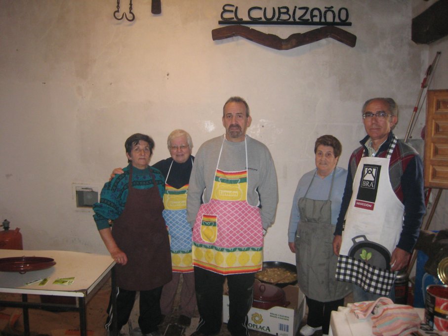 A la hora de comer, las más de 100 personas se repartieron entre las Escuelas y el antiguo Teleclub, lo que permitió estar más desahogados que el año anterior. Y se degustó el también tradicional “menú de primavera”, es decir, caparrones, pollo con pimientos y pasteles, que como siempre estaban fenomenal. Los cocineros fueron Milagros, Marisa, Nicolás, Trini (que se movió y no sale en la foto), Naty y Antonio.
