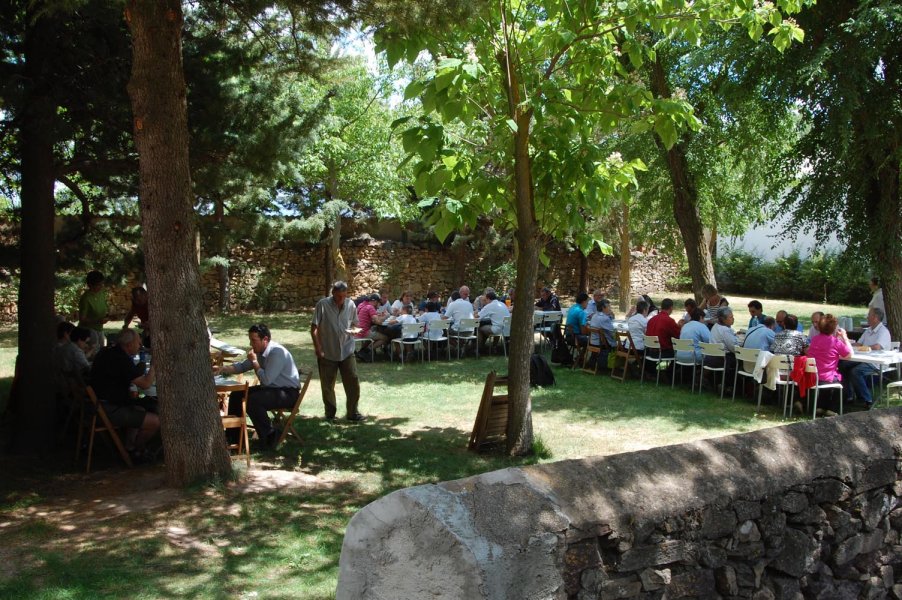 Después de visitar la catedral de Tarazona y el nacimiento del Queiles, llegaron a Trébago donde comieron al aire libre en el Coto, detrás del frontón, lugar habitual de las reuniones gastronómicas.