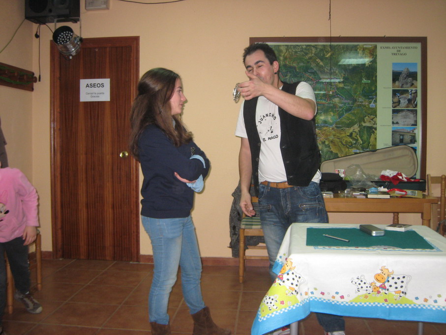 A las 7 y ½, en el Salón Social Las Escuelas, actuación de Juancho el Mago, que nos hizo reír en abundancia –a grandes y pequeños– con su magia, y que a más de uno dejó con la boca abierta con sus trucos. La verdad es que este mago, de Calahorra (La Rioja), deleitó extraordinariamente a los asistentes que llenaban el salón.