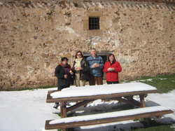 La jornada empezó a las 9’30 horas, con el reparto de tareas. A partir de ahí, cada uno a sus puestos. Cocineros, plantadores, ayudantes, realizadores de zanja y colocación de goma para ampliar riego por goteo en el Parque Pepe-Periquín, organizadores de mesas para comer, limpieza de la Iglesia y de la Ermita para dejarlas a punto para Semana Santa y la Pascua... El grupo de la Ermita subió con D. Alfonso, el cura de Trébago, que también estuvo ayudando limpiando la casa del santero, por si hacía falta para la Pascua. En la Ermita había nieve, y la pradera y alrededores estaban preciosos.