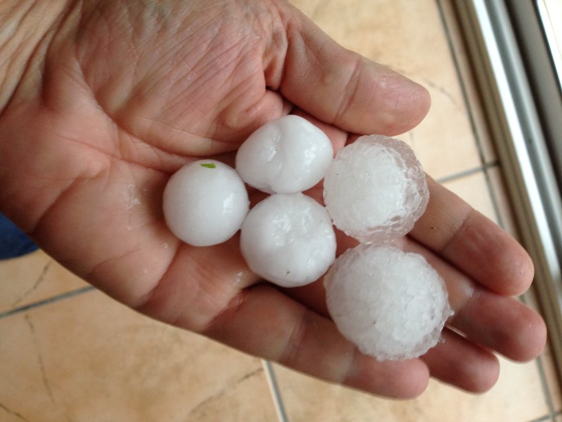 Trébago, 19/08/2014. Ayer, 18 de agosto de 2014, cayó en Trébago una fuerte granizada, que causó abolladuras en coches, rotura canalones, de alguna luna...