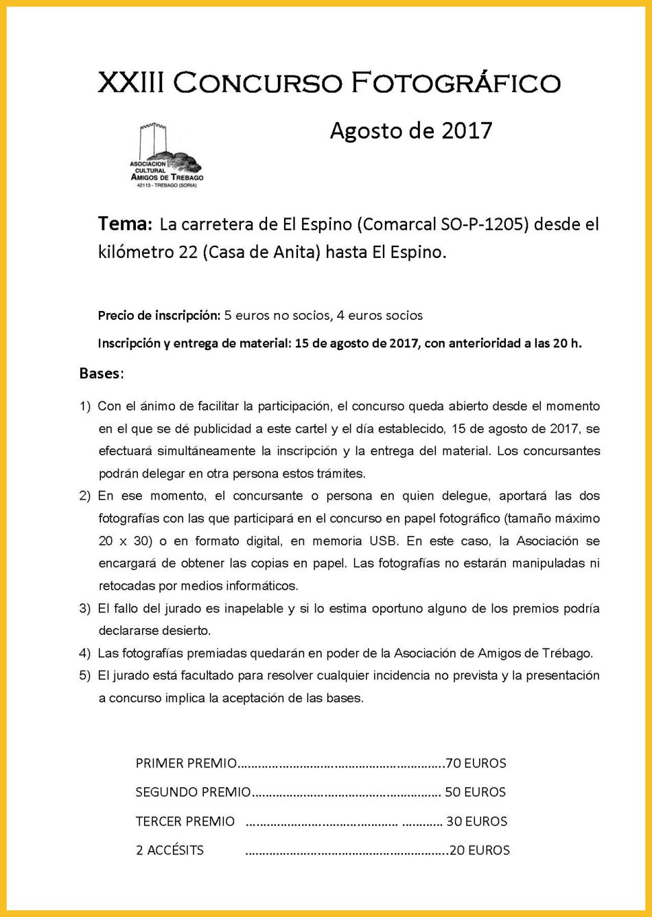 Trébago, 24/07/2017. Como todos los años, dentro de las actividades culturales de verano, la Asociación de Amigos de Trébago convoca el Concurso de Fotografía, correspondiendo este año el número XXIII.