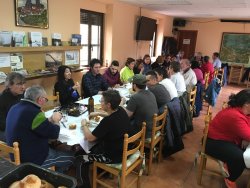 A continuación, vermut en Las Escuelas para degustar los bollos preñados, ensalada, las sobras de cabeza de cerdo (dos bandejas) de la merienda que habían tenido en el pueblo los residente dos días antes, y rosquillas y café, o sea que nos fuimos a casa ya todos comidos.