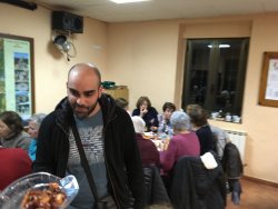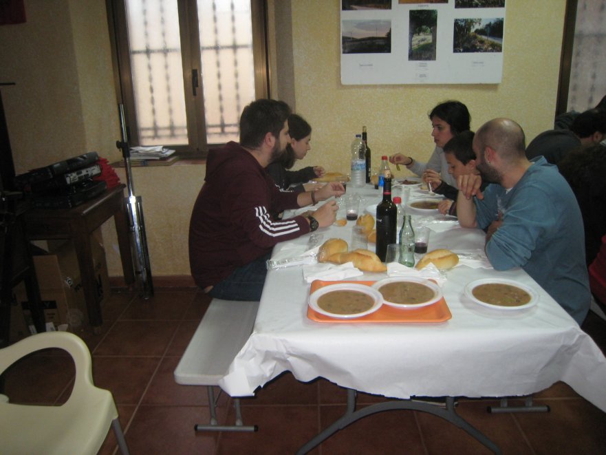 El salón lleno, ocupada la sede de la Asociación, y aún hubo quien comió en casa, que ya no se cabía (bajaron con la cazuela y les sirvieron el rancho). Y es que estuvimos casi 90 personas. Y sobró de todo, que se congeló y seguro que en Semana Santa se da buena cuenta de ello.