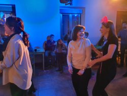 Una vez concluidos los fuegos, tuvo lugar en el salón social Las Escuelas el tradicional cotillón, donde todos los vecinos pudimos bailar al ritmo de la música de Leo, brindar por el año entrante y pasar una noche divertida con amigos y familiares. Alrededor de 45 personas se pasamos un rato entretenido y divertido, celebrando el comienzo del nuevo año.