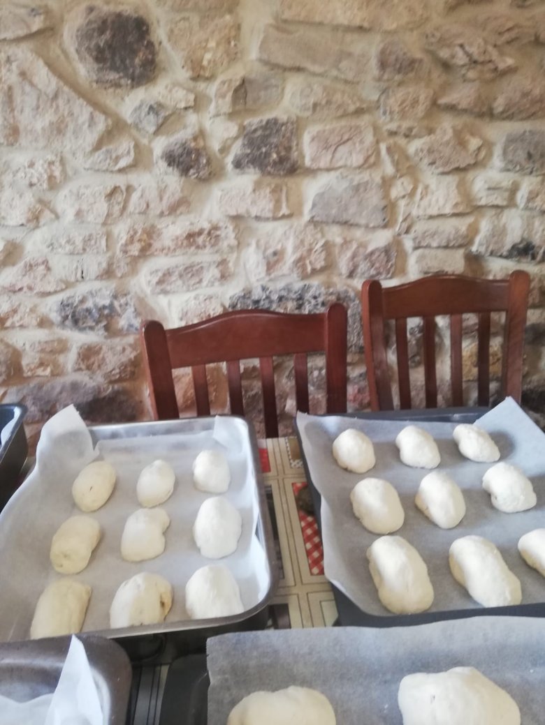 Así, el viernes 31 de enero, por la tarde, hubo chocolatada en la Escuela. El sábado 1 de febrero taller de elaboración de rosquillas, bollos preñados e introducción al enchorizado tradicional, en el antiguo Teleclub. Los bollos se cocieron luego en la Casa Rural Valmayor. Y de todo ello dimos buena cuenta luego en la Escuela, donde unas 60 personas nos comimos los bollos preñados, estupendos, acompañados de una ensalada. Y degustamos las rosquillas recién hechas. Extraordinarias.