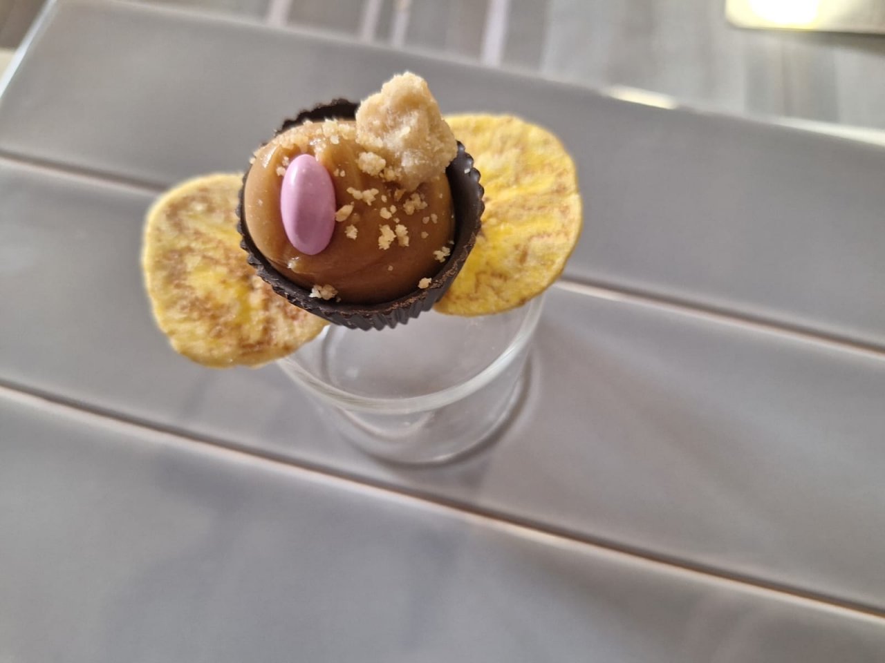 Estas cucharitas llevan: Membrillo mezclado con queso de boletus, galletas de mantequilla desmenuzadas, chocolate desmenuzado, turrón de chocolate, escamas de pipas. Podéis añadir nueces, flores alimenticias...